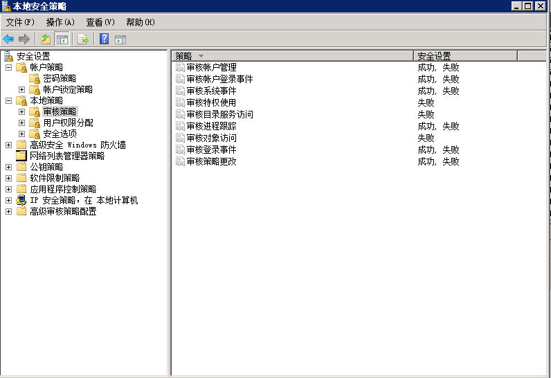 Windows Server 2008 R2 系统的审核功能在默认状态下并没有启用 ,建议开启审核策略,若日后系统出现故障、安全事故则可以查看系统的日志文件,排除故障,追查入侵者的信息等。