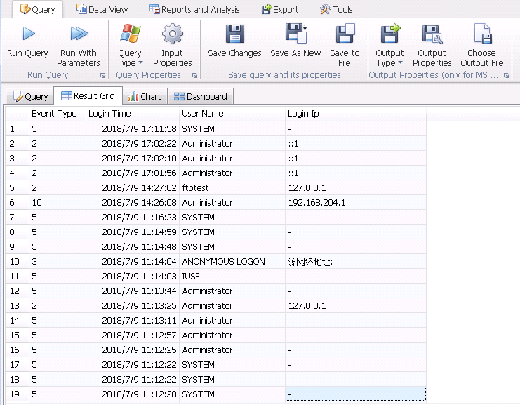 对于GUI环境的Log Parser Lizard,其特点是比较易于使用,甚至不需要记忆繁琐的命令,只需要做好设置,写好基本的SQL语句,就可以直观的得到结果。