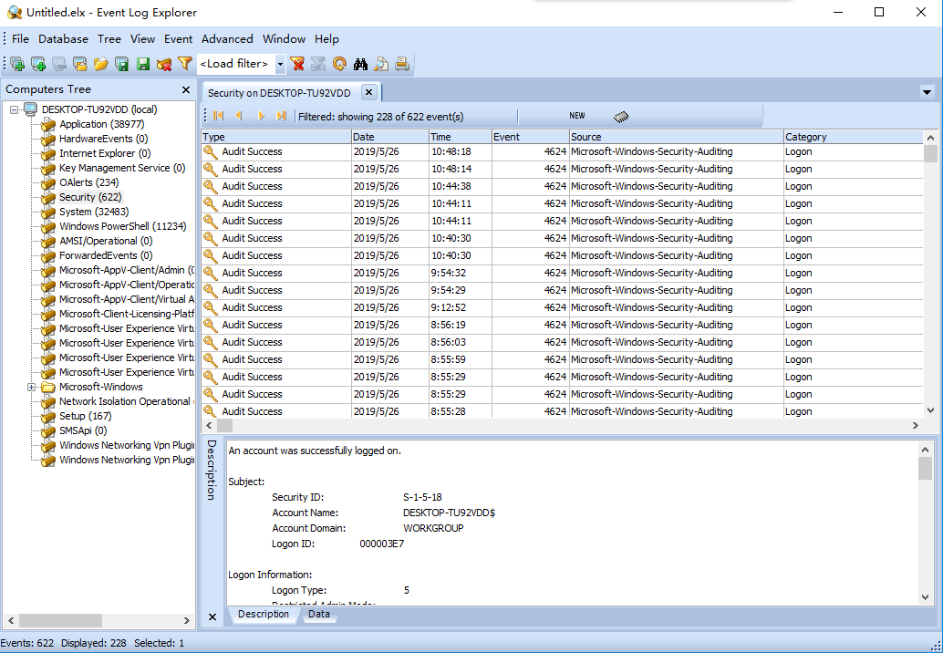 Event Log Explorer是一款非常好用的Windows日志分析工具。可用于查看,监视和分析跟事件记录,包括安全,系统,应用程序和其他微软Windows 的记录被记载的事件,其强大的过滤功能可以快速的过滤出有价值的信息。