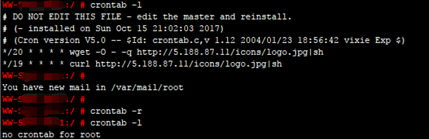 通过排查系统开机启动项、定时任务、服务等,在定时任务里面,发现了恶意脚本,每隔一段时间发起请求下载病毒源,并执行 。