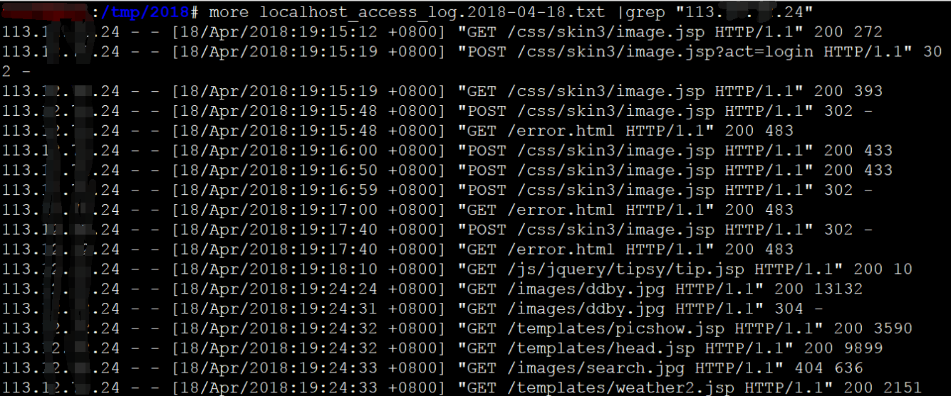 进一步审查所有的日志文件(日志保存时间从2017-04-20至2018-04-19),发现一共只有两次访问image.jsp文件的记录,分别是2018-04-18和2017-09-21。