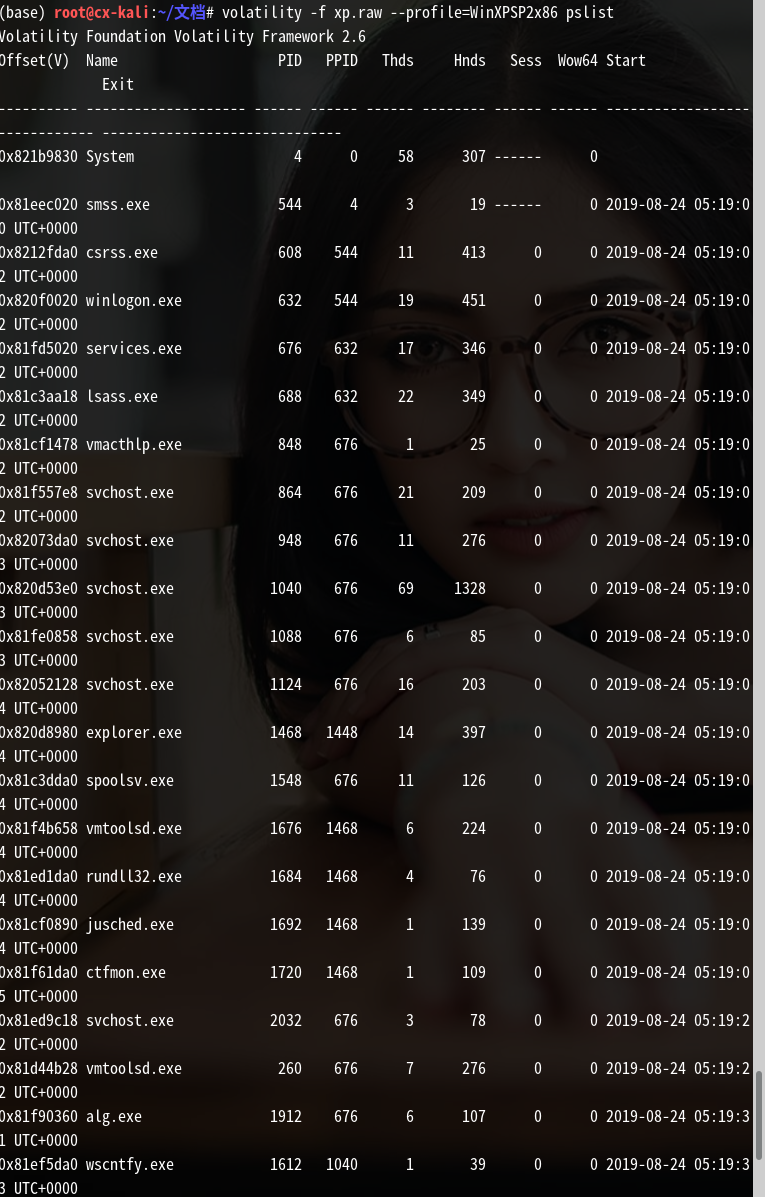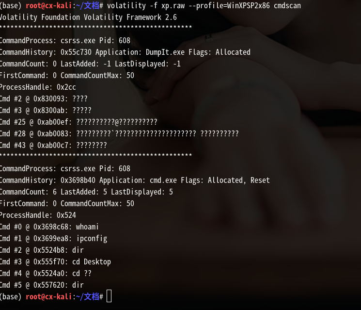 volatility -f xp.raw –profile=WinXPSP2x86 <插件>